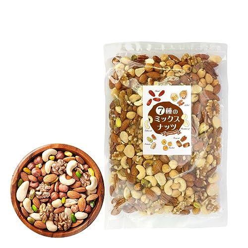 セット内容7種のミックスナッツx1袋 内容量500g・1kg※お好みのサイズをお選びいただけます。 原材料名アーモンド(アメリカ産)、クルミ(アメリカ産)、カシューナッツ(インド産)、ピーカンナッツ(アメリカ産)、マカダミアナッツ(オーストラリア産)、ヘーゼルナッツ(トルコ産)、ピスタチオ(アメリカ産) 保存方法直射日光・高温多湿を避け、冷暗所にて保存してください。