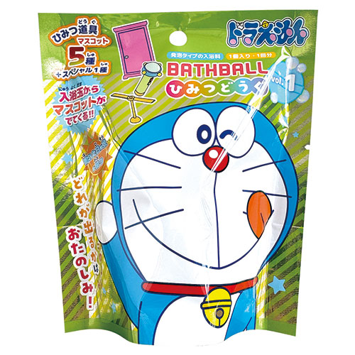 マスコットはひみつ道具が出てきます。大人気「ドラえもんバスボール ひみつどうぐver.」の第1弾が、スタンドタイプのパッケージになってリニューアルしました。