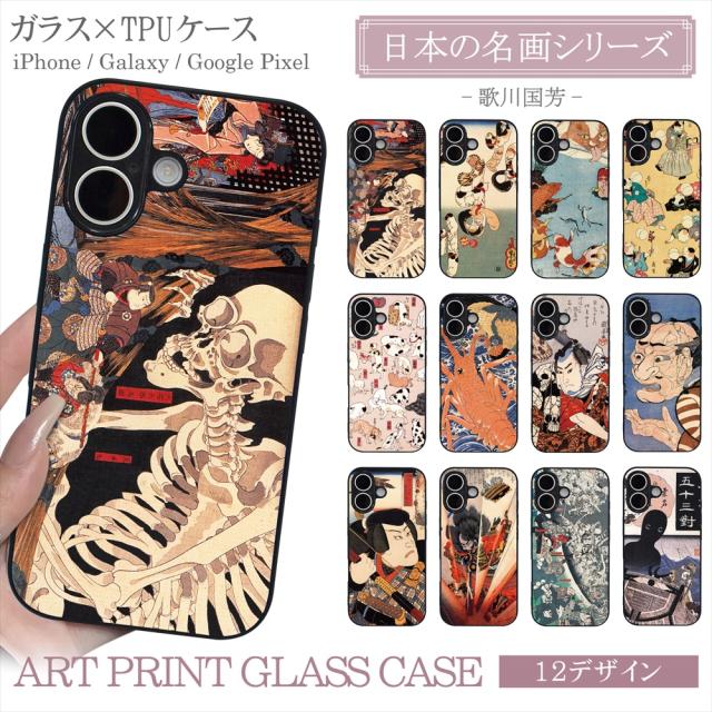 スマホケース ガラスTPU 歌川国芳 浮世絵 日本の名画 iPhone 17 iPhone 16 iPhone 16e iPhone15 Pixel 8 Pro 7a Galaxy S24 S23 S22 プリントケース スマホカバー 名画 アート オーダー 背面 デザインケース プリント 絵画スマホケース