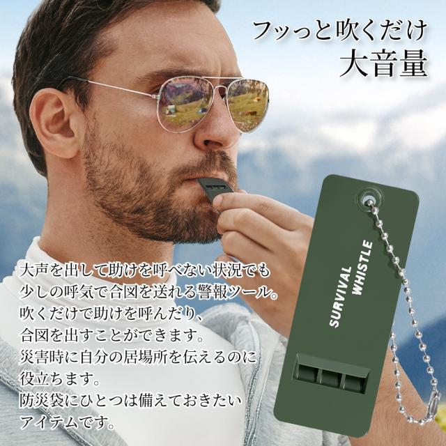 | フッと吹くだけ大音量! 危険を知らせたり、助けを求めたり、 合図を出すときに活躍! |