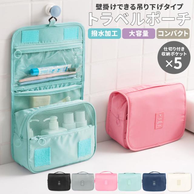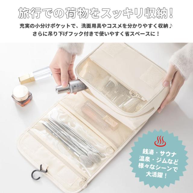 吊り下げできて、洗面用具をスッキリ収納できるトラベルポーチ★