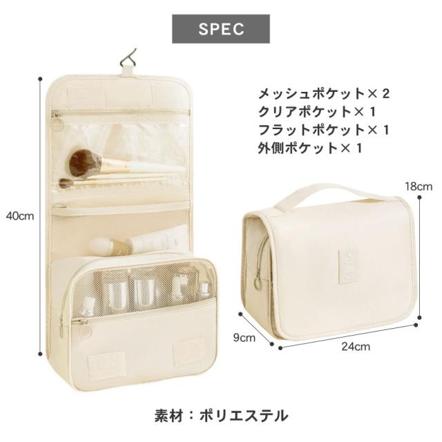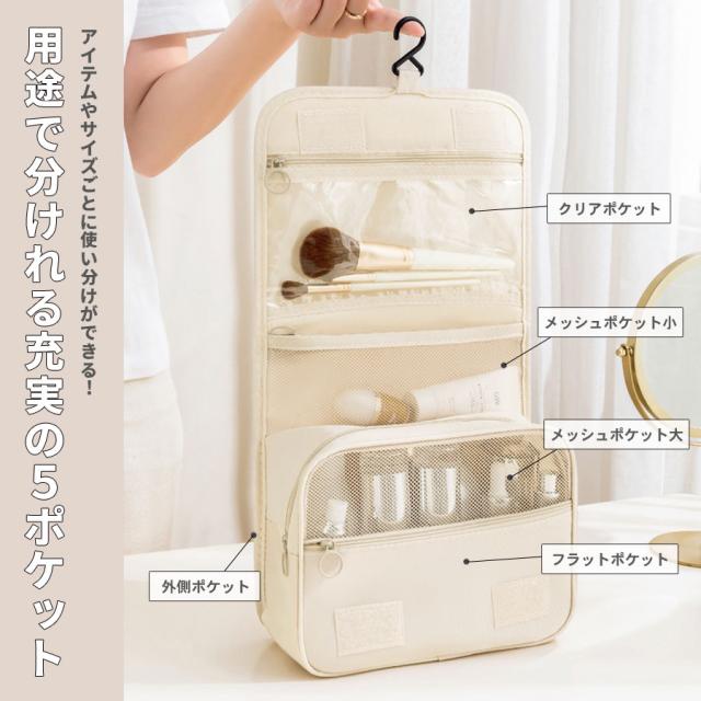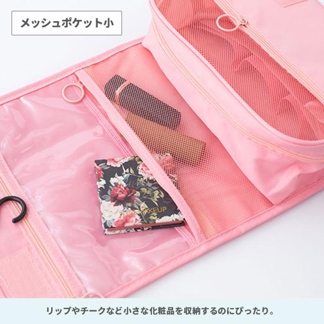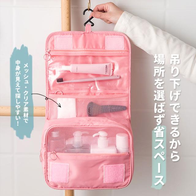 トラベルポーチ 吊り下げ 洗面 ポーチ 旅行 洗面用具 化粧ポーチ メイクポーチ メッシュ 収納 インナーバッグ 自立 立てる 壁掛け フック付き コンパクト 銭湯 お風呂 サウナ 温泉 グッズ 便利 (cn0722)