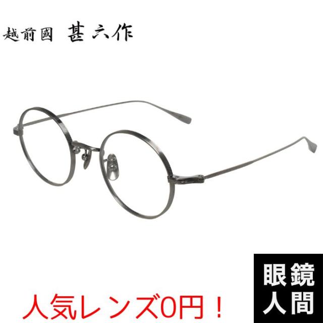 鯖江 メガネ ブランド チタン 丸 丸メガネ 丸眼鏡 ラウンド 眼鏡 フレーム アンティーク シルバー メンズ 日本製 越前國 甚六作 EZ 042 4 45 老眼鏡 度付き 伊達