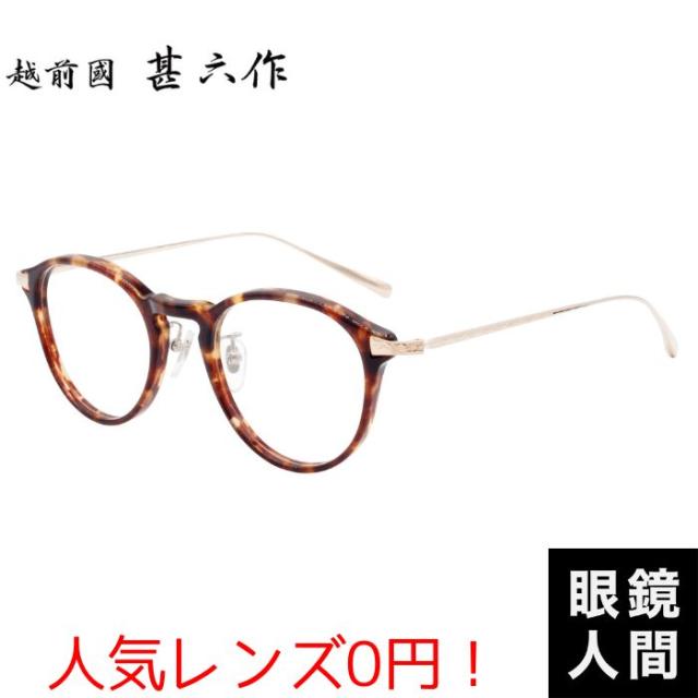 鯖江 メガネ ブランド チタン アセテート コンビ メガネフレーム おしゃれ メンズ デミ ゴールド 日本製 越前國 甚六作 JN 097 2 48 伊達 サングラス 老眼鏡