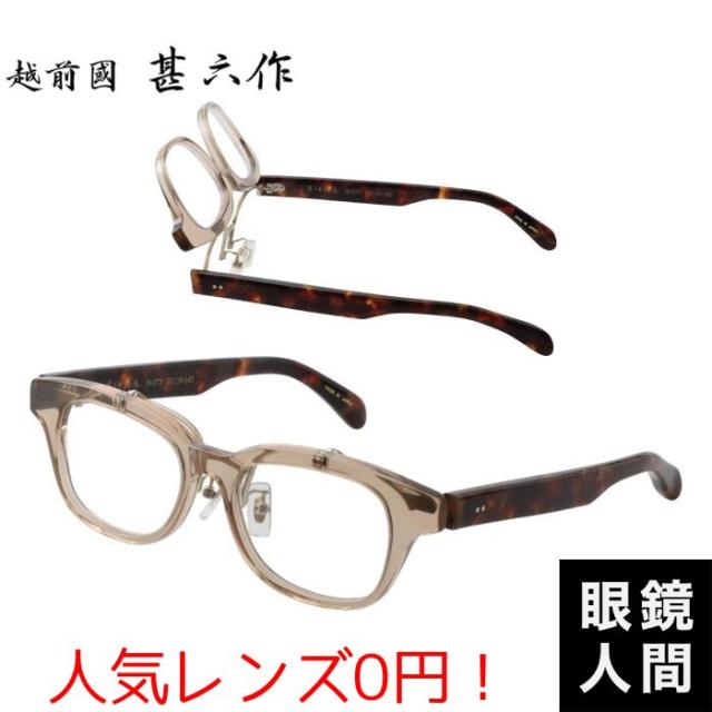 越前國甚六作 跳ね上げ セルロイド メガネ フレーム クリア ブラウン メンズ ブランド 鯖江 眼鏡 日本製 JN 073 6 52 老眼鏡 度付き サングラス 伊達メガネ