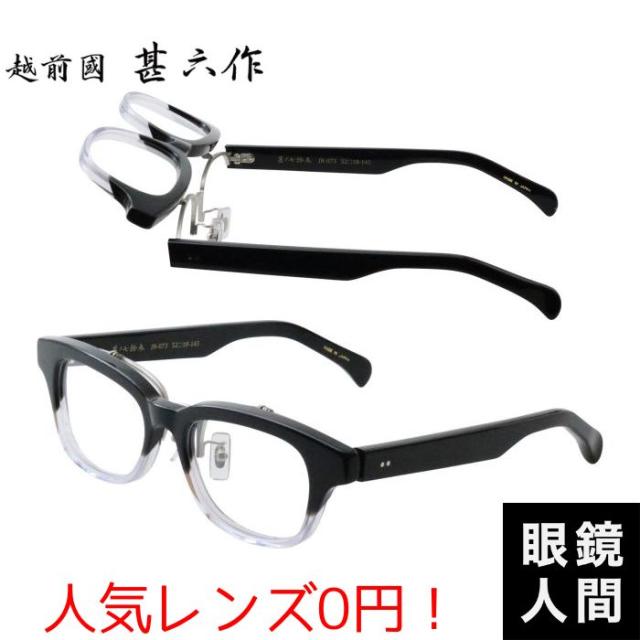 越前國甚六作 跳ね上げ セルロイド メガネ フレーム ブラック クリア メンズ ブランド 鯖江 眼鏡 日本製 JN 073 2 52 老眼鏡 度付き サングラス 伊達メガネ