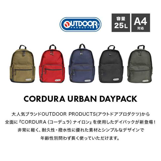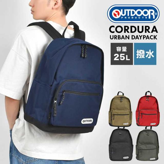 リュック アウトドアプロダクツ OUTDOOR PRODUCTS メンズ レディース 大容量 バックパック リュックサック 25L A4 コーデュラナイロン 軽量 撥水 PC収納 13インチ 無地 ブラック 黒 ベージュ 赤 通学 通勤 高校生 中学生 男の子 子供 大人 ビジネス シンプル 丈夫 社会人