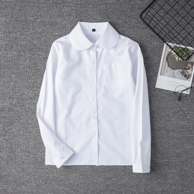 白シャツレディース長袖ワイシャツブラウストップスオフィス丸襟大きサイズ無地