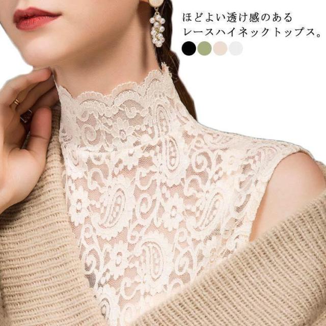 シアートップス レディース レース タンクトップ ハイネック ノースリーブ トップスインナー 薄手 花柄 刺繍 レース レイヤード