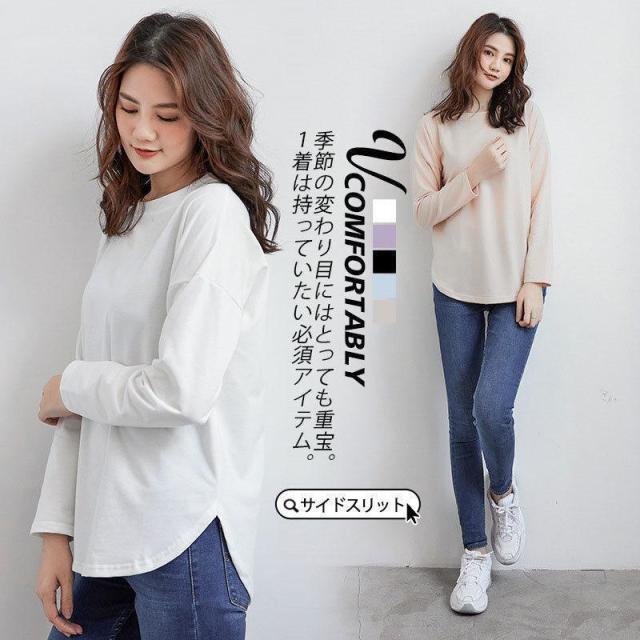 Tシャツ レディース 薄手 春 夏 秋 長袖 春服 ブラウス レイヤード シャツ パーカー ルームウェア カットソー 部屋着 インナー ゆったり