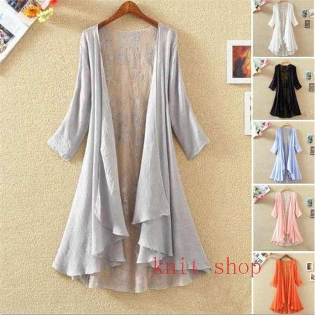 ロングカーディガン レディース レース UVカット 紫外線対策 冷房対策 前開き 夏 シフォン 大きいサイズ リゾート フレア 薄手 上着 おしゃれ