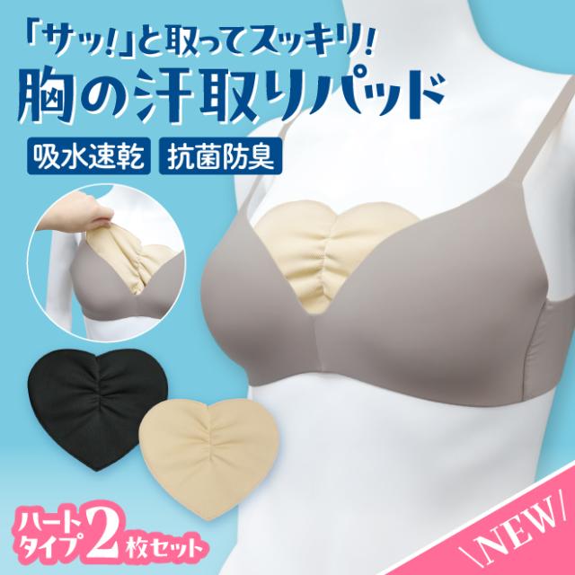 サッと着けてサッと取れる、ハート型の胸の汗取りパッドです。また、新しくワイド型が登場!