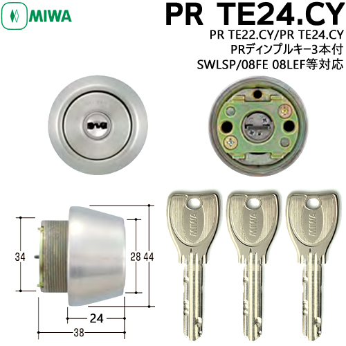 PR TE24.CY ディンプルキー3本付 MIWA 鍵 交換用シリンダー PRシリンダー SWLSPタイプ 交換シリンダー miwa 玄関 鍵 シリンダー 交換 美和ロック 08FE 08LEFPR TE24.CY