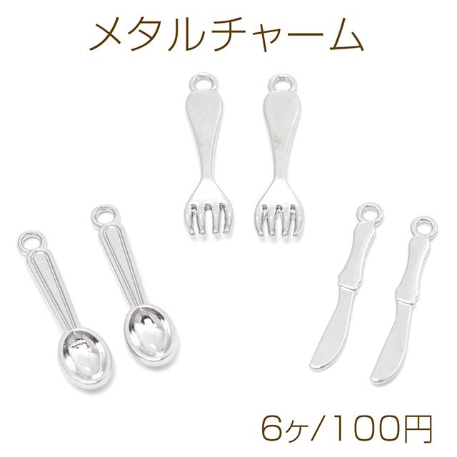 メタルチャーム 合金製 ナイフ フォーク スプーン カトラリー 食器 ロジウム メタルパーツ 約8×30mm(6ヶ)