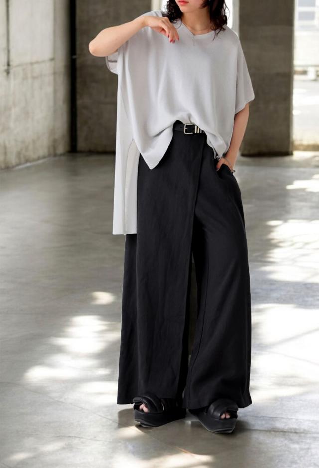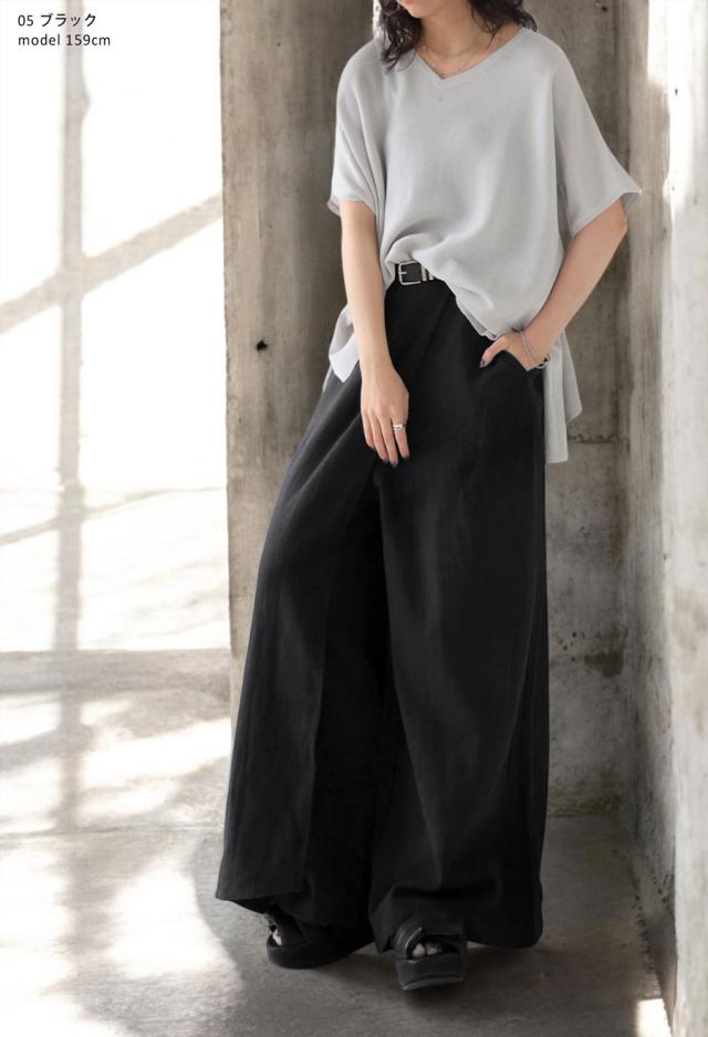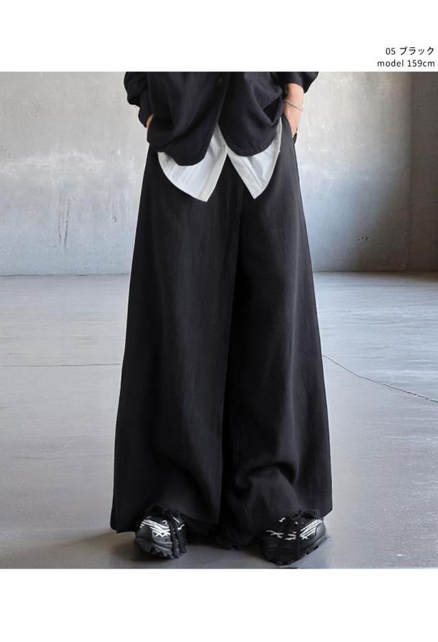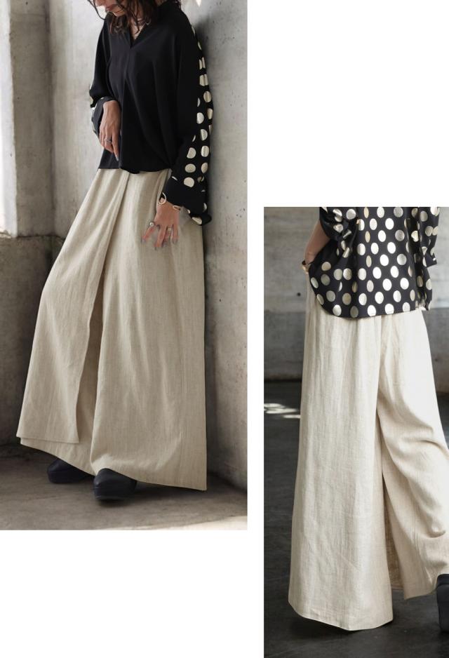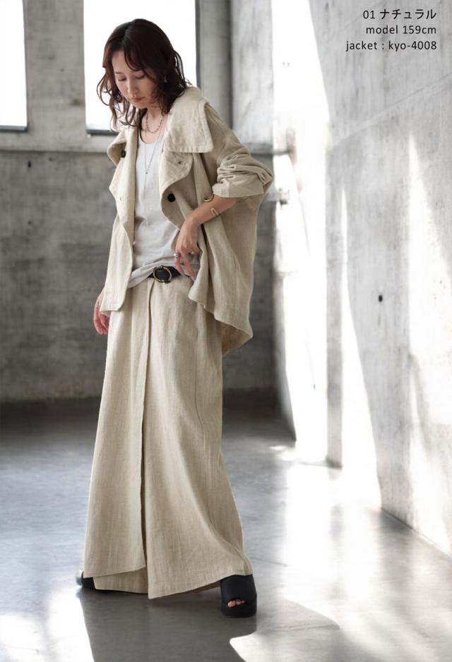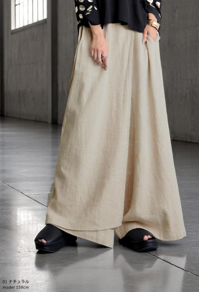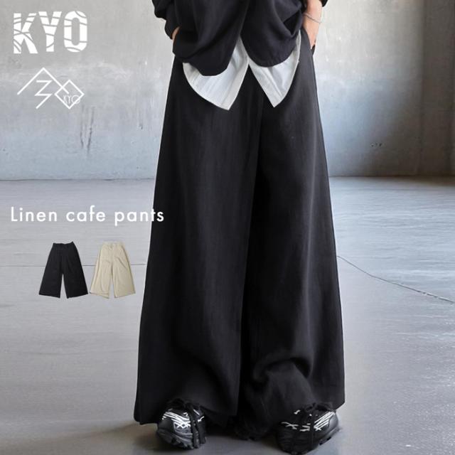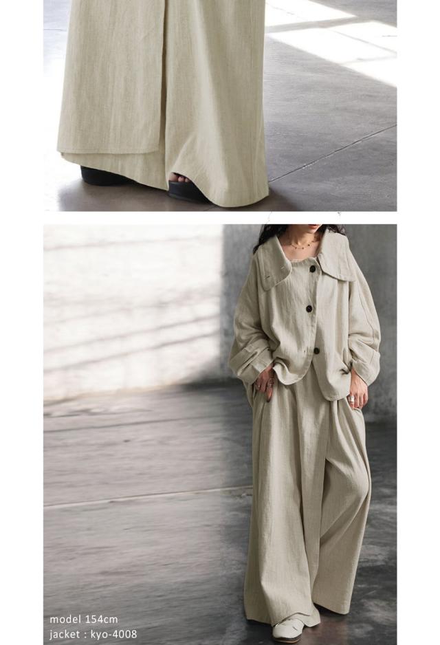 kyo-4009 パンツ ボトムス コットンリネン コットン リネン ワイド ナチュラル素材 セットアップ 斜め裾 おしゃれ ブラック ベージュ ゆったり 春 夏 秋 高級感 特別