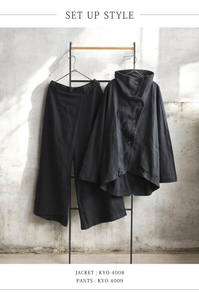 セットアップで着られる同素材ジャケット(KYO-4008)と合わせれば、スタイルに奥行きと統一感をプラスできます。