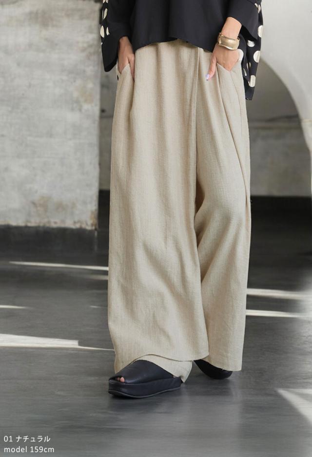 リネン カフェパンツ レディース 綿麻 ワイドパンツ 送料無料・再入荷 メール便不可