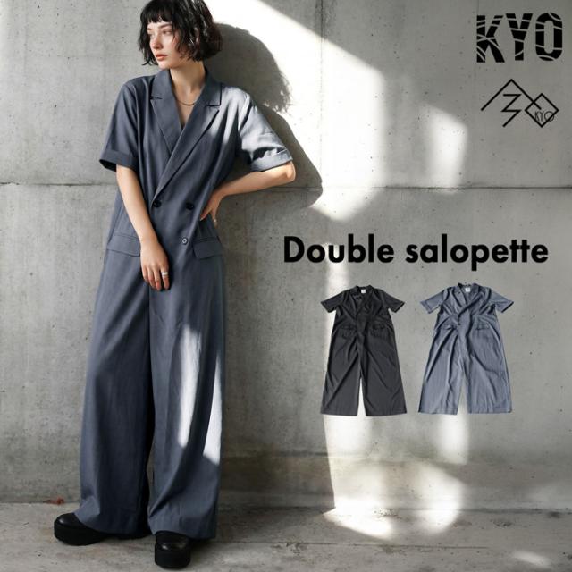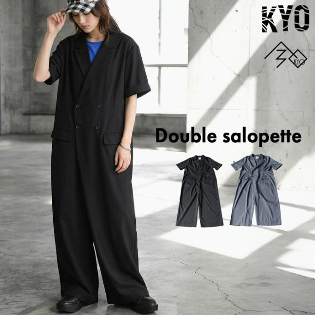 kyo-4012 ロング丈 ワイドシルエット つなぎ サロペット 無地 ダブルデザイン 体型カバー ゆったり モード ロングパンツ きれいめ カジュアル 通勤 オフィスカジュアル オケージョン