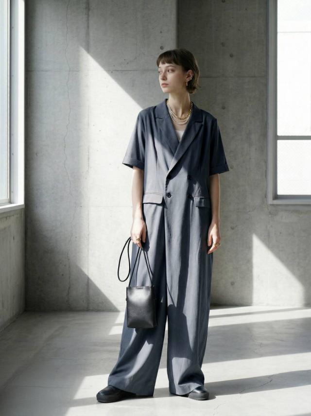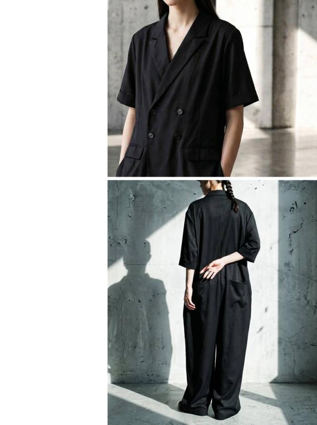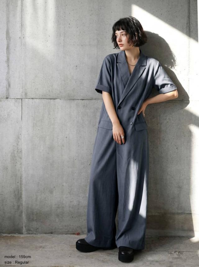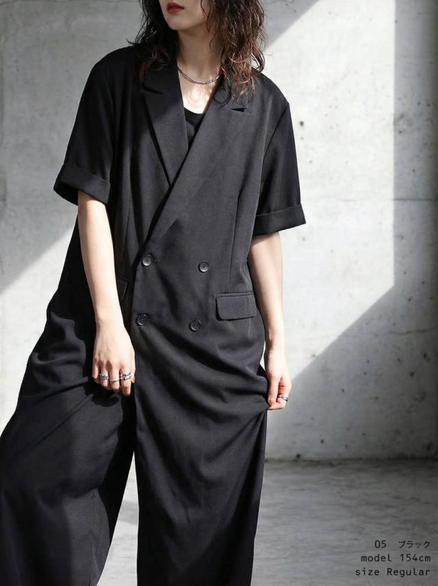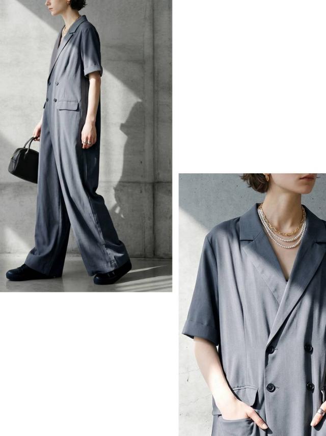 テーラード風のクラシックな佇まいが魅力のオールインワン(つなぎ・サロペット)です。