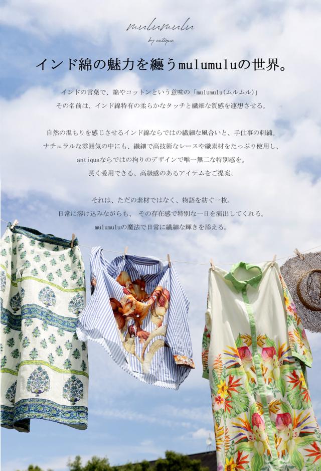 インド綿ならではの繊細な風合い、手仕事の刺繍にフォーカスを当てたantiqua発のブランド『mulumulu(ムルムル)』