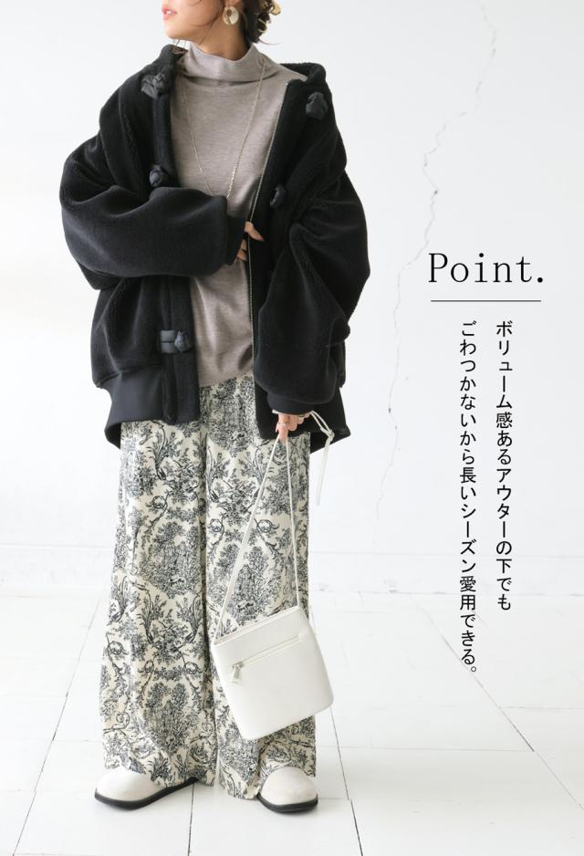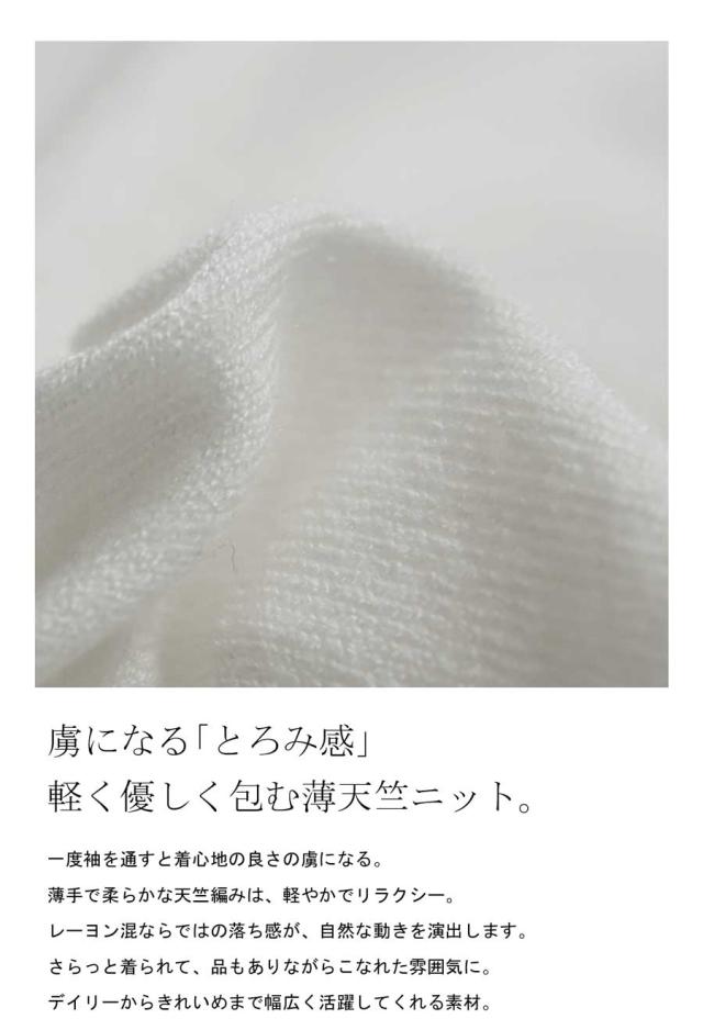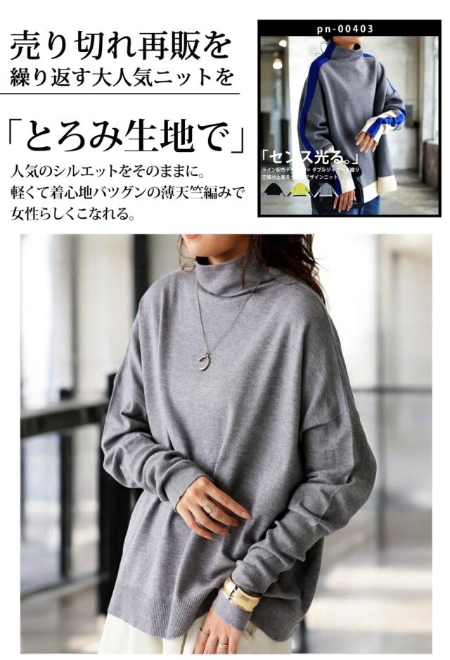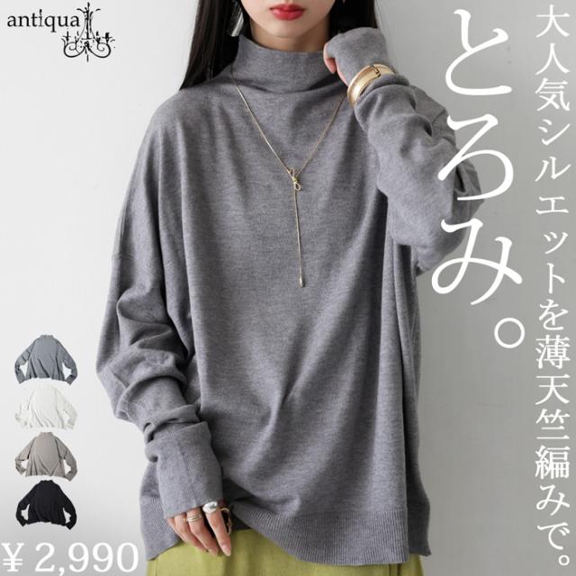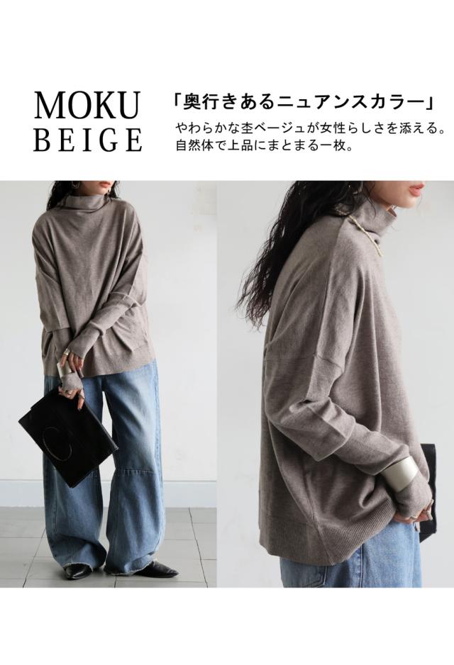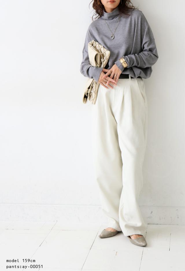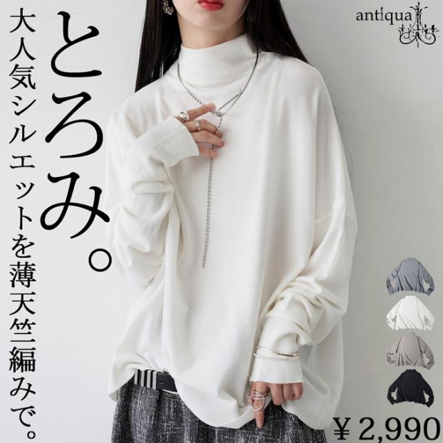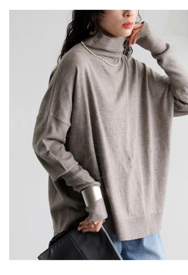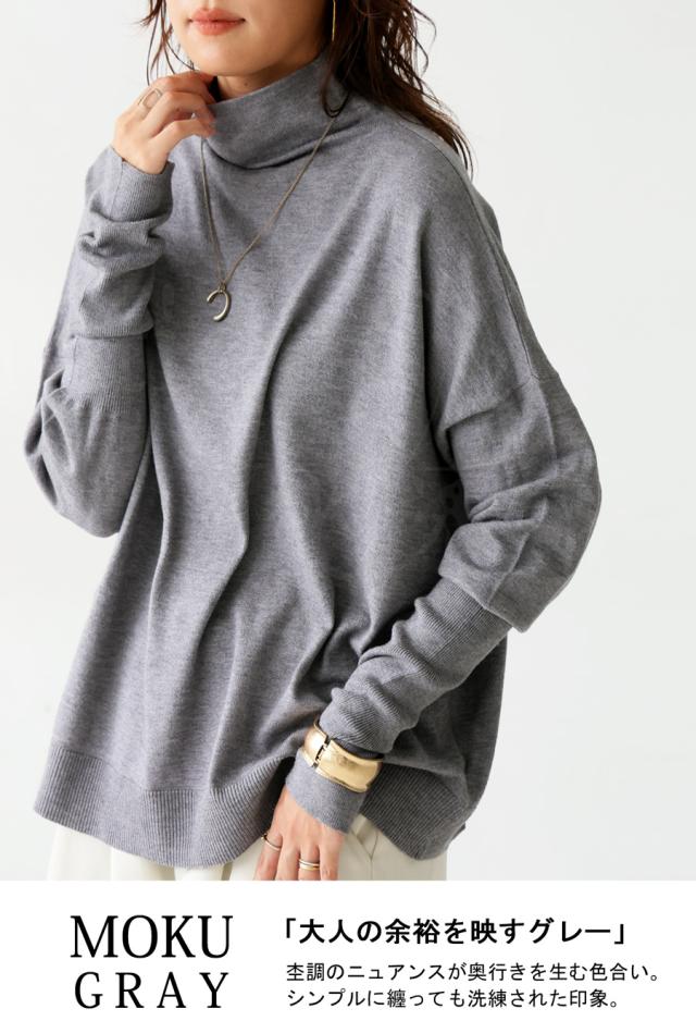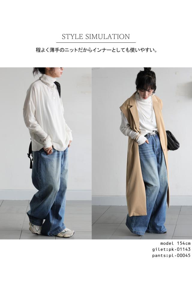 薄手のハイゲージ天竺編みで仕立てた、とろみ生地のハイネックニットが登場。