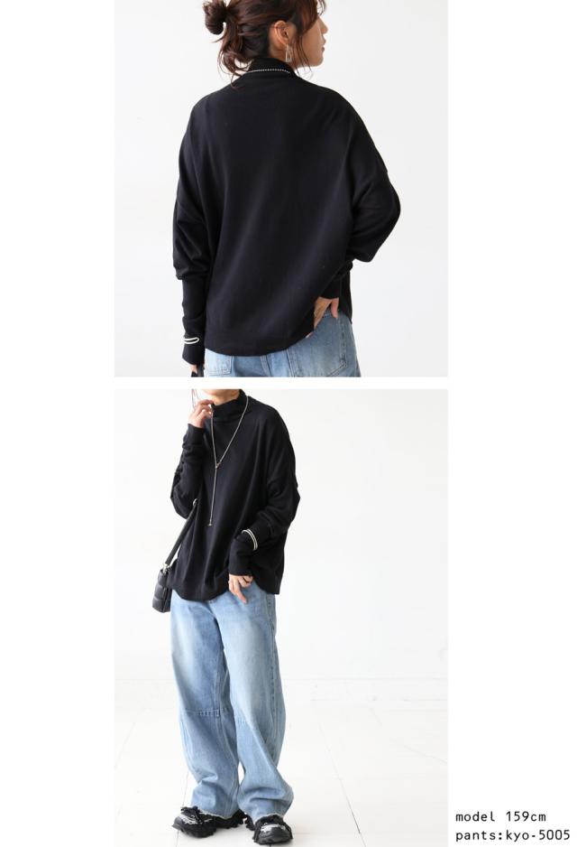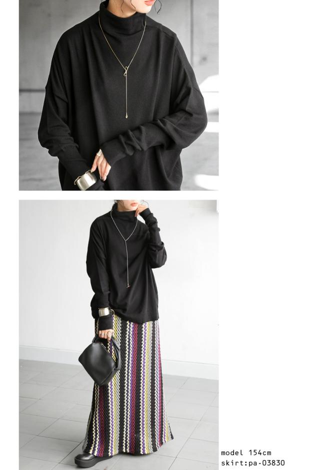 na-00499 ハイネック 無地 天竺 ドロップショルダー 体型カバー 着回し ゆったり 普段着 シンプル きれいめ 上品 通勤 オフィス とろみ生地 薄手 ハイゲージ レーヨン混