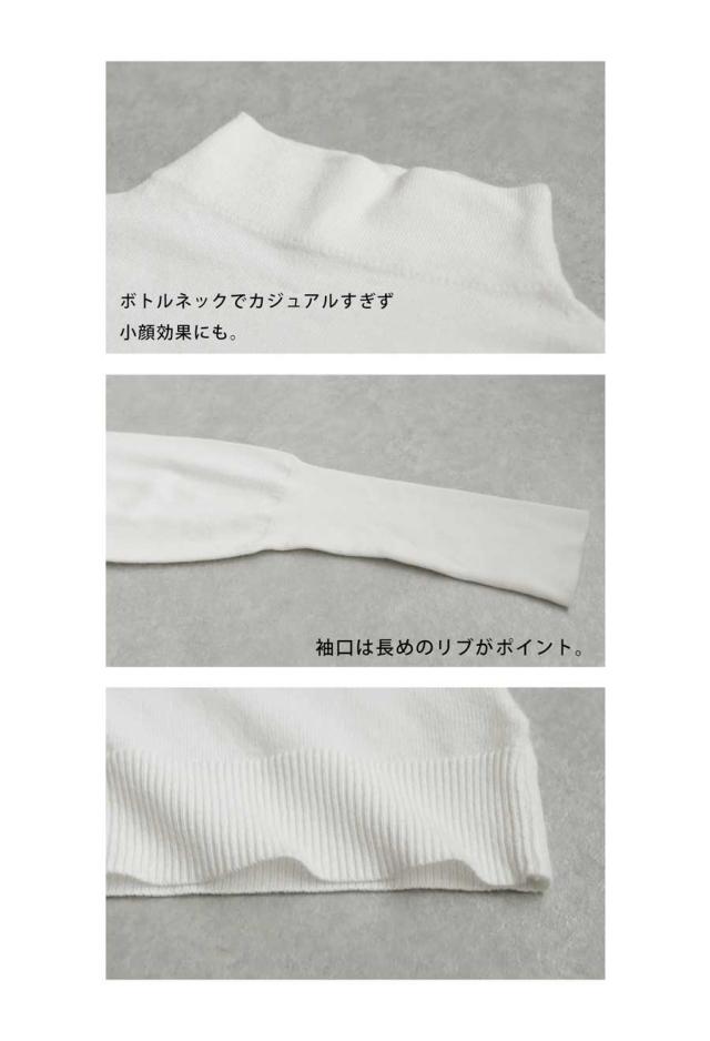 通勤からショッピングまで、きれいめにもカジュアルにも使える万能ニットです。