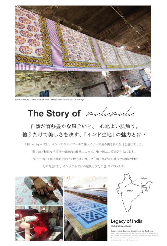 インドの伝統を感じる繊細な風合い、手仕事の刺繍にフォーカスを当てたantiqua発のブランド『mulumulu(ムルムル)』