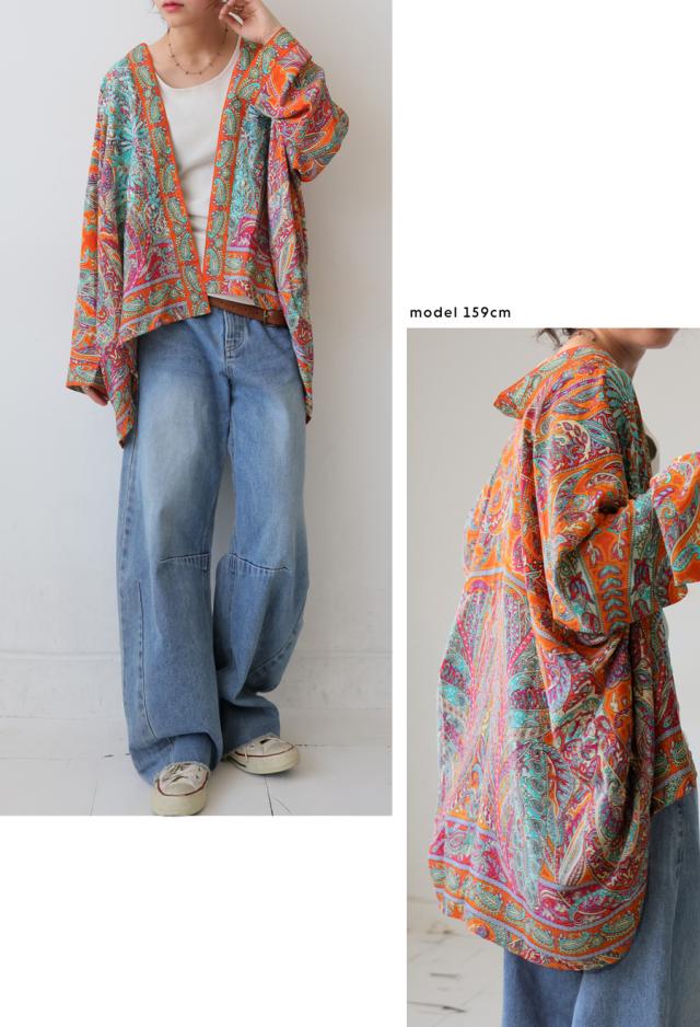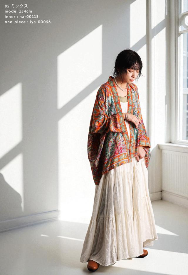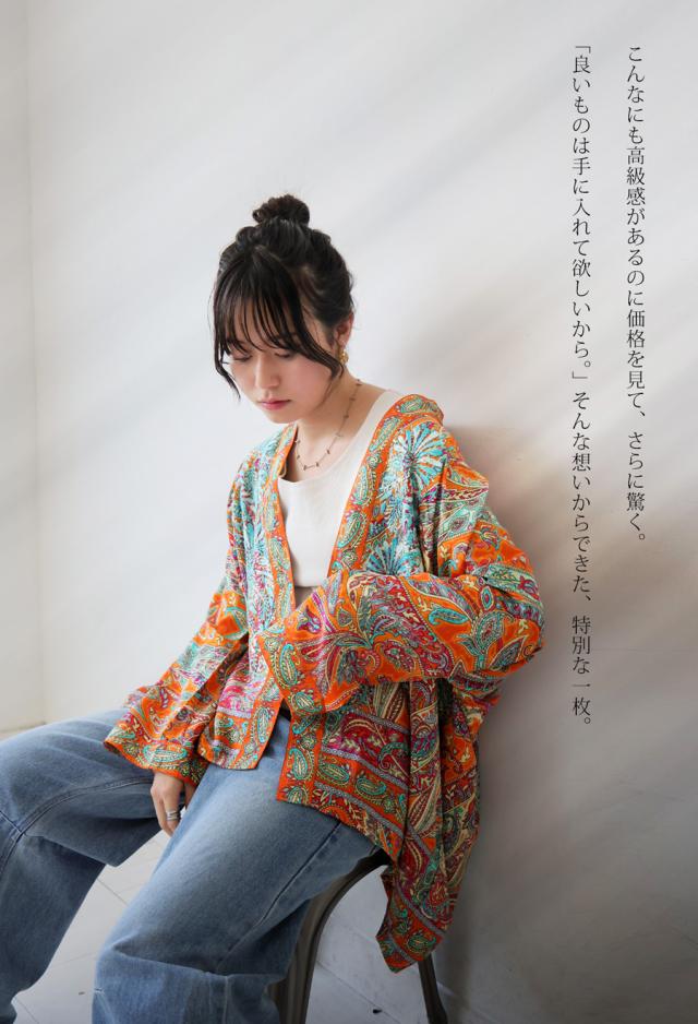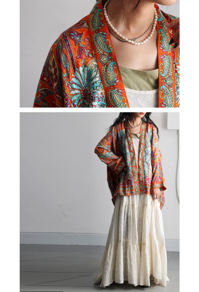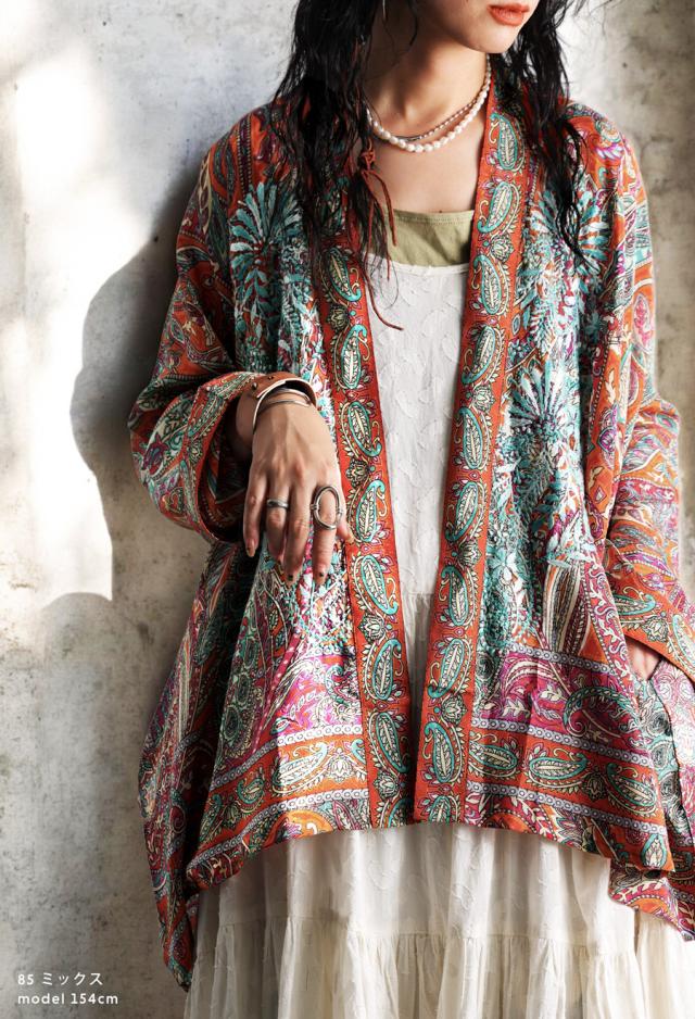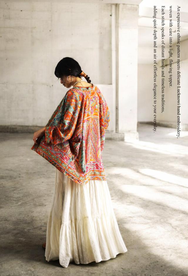 羽織としても使いやすく、Tシャツやワンピースの上にさらりと合わせるだけで、装いにエスニックなニュアンスを添えてくれます。