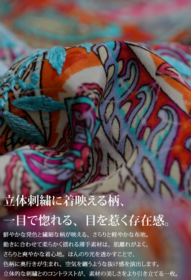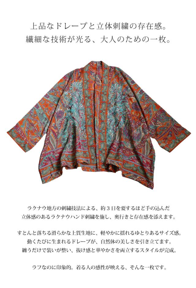 刺繍はインド・ラクナウ地方のハンド刺繍によるもので、繊細な職人技が光る一枚です。