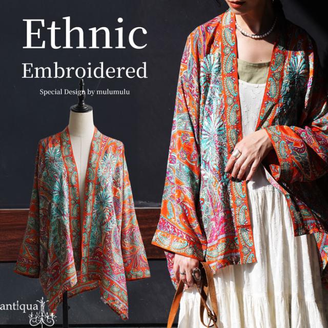 エスニック柄刺繍カーディガン レディース トップス 送料無料・(80)メール便可