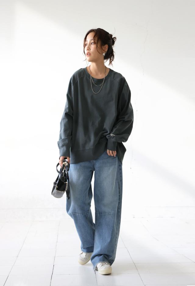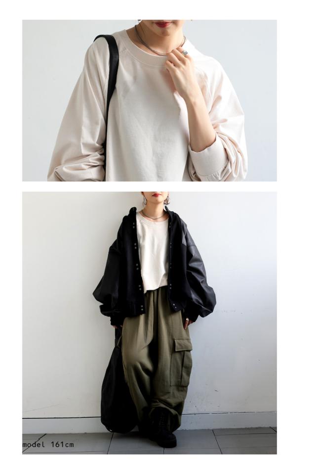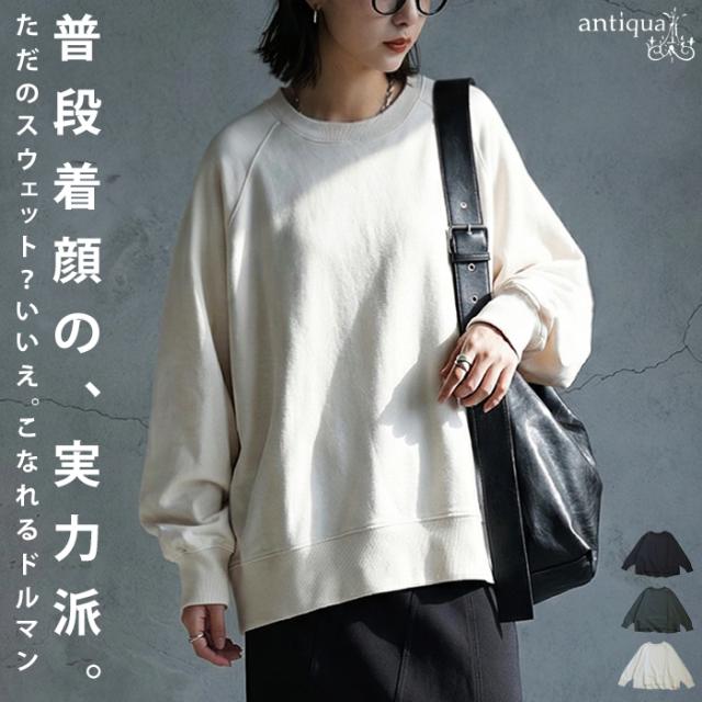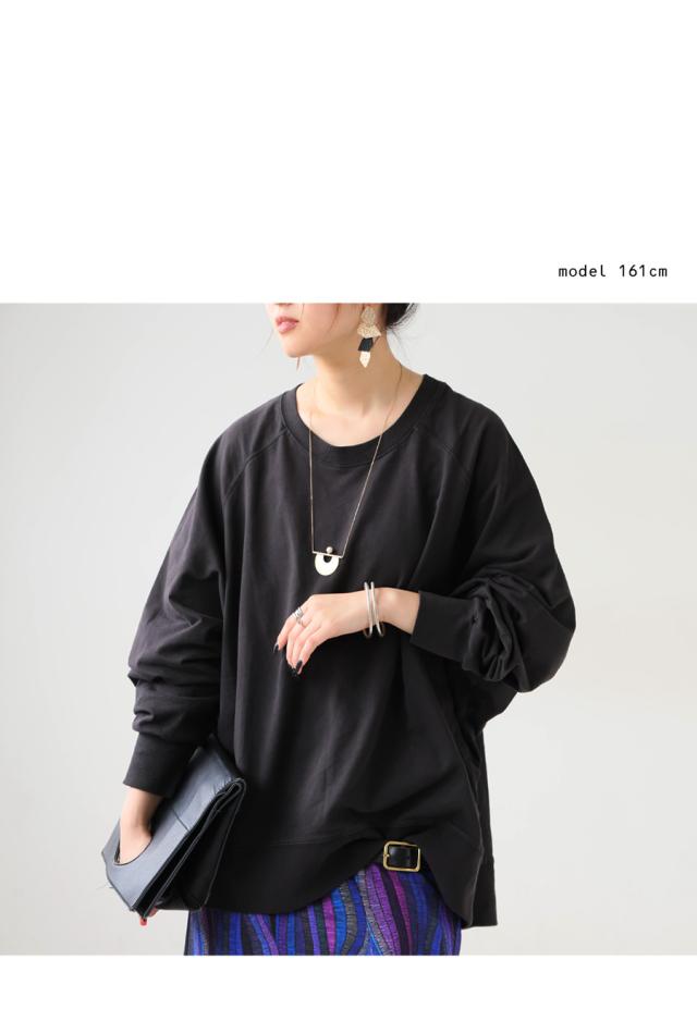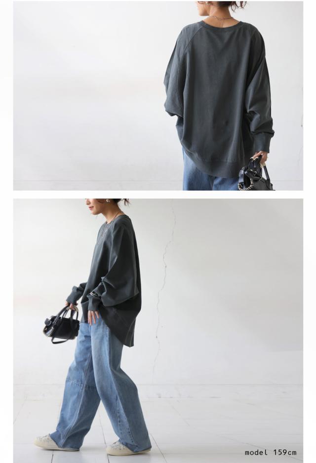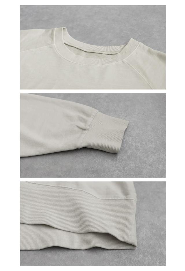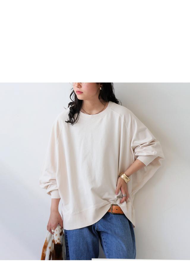 クルーネックのシンプルなデザインが顔まわりをすっきりと見せ、リラックス感のあるラグランスリーブが自然な抜け感を演出します。