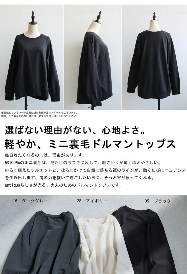 軽やかでやさしい肌ざわりが魅力の、ミニ裏毛素材のドルマントップスです。