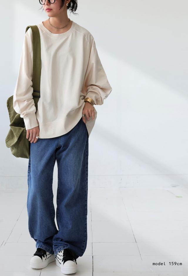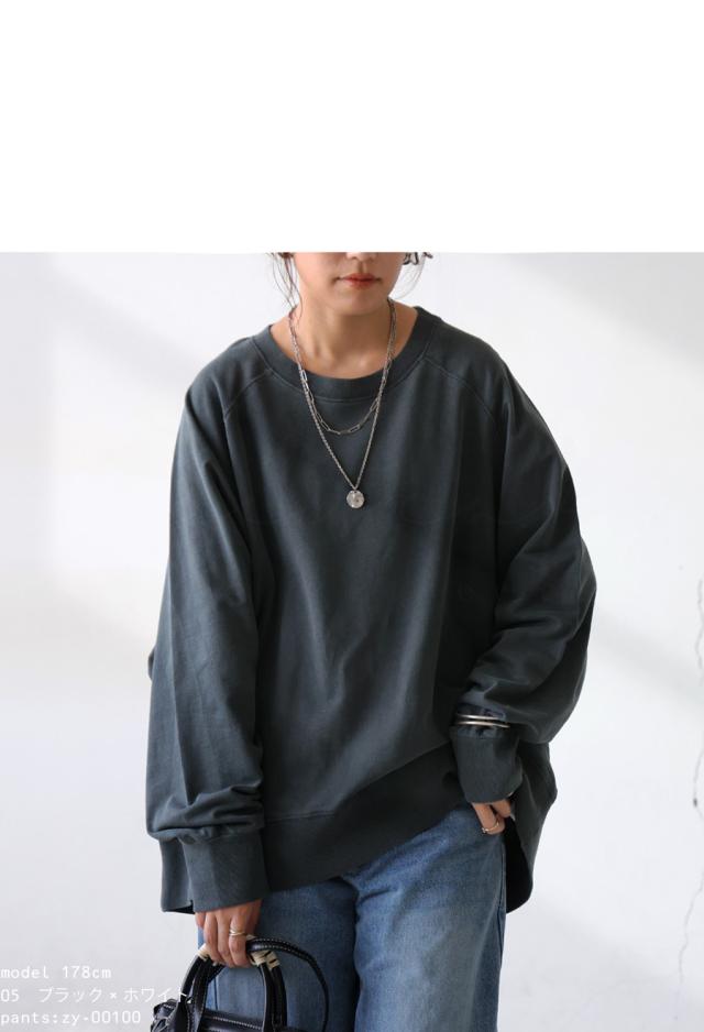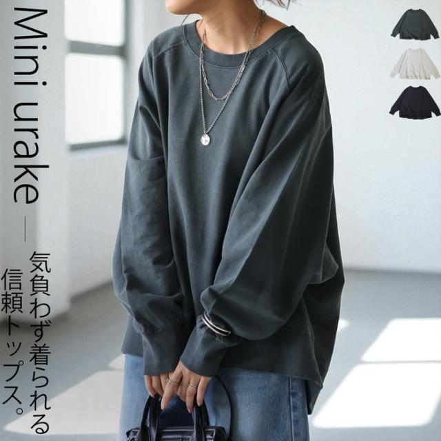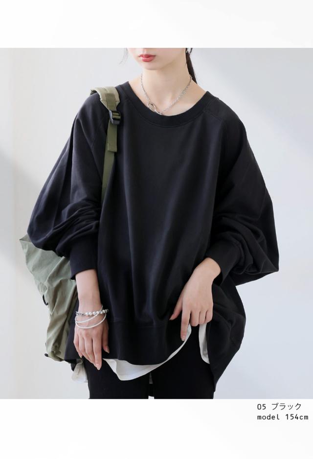 na-00504 スウェット トレーナー プルオーバー クルーネック 前後差 ゆったり 無地 綿100 綿 コットン ミニ裏毛 裏毛 ゆったり おしゃれ 体型カバー カジュアル ラフ ナチュラル