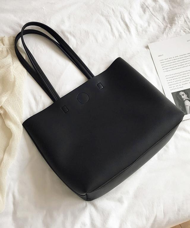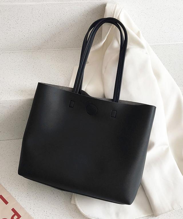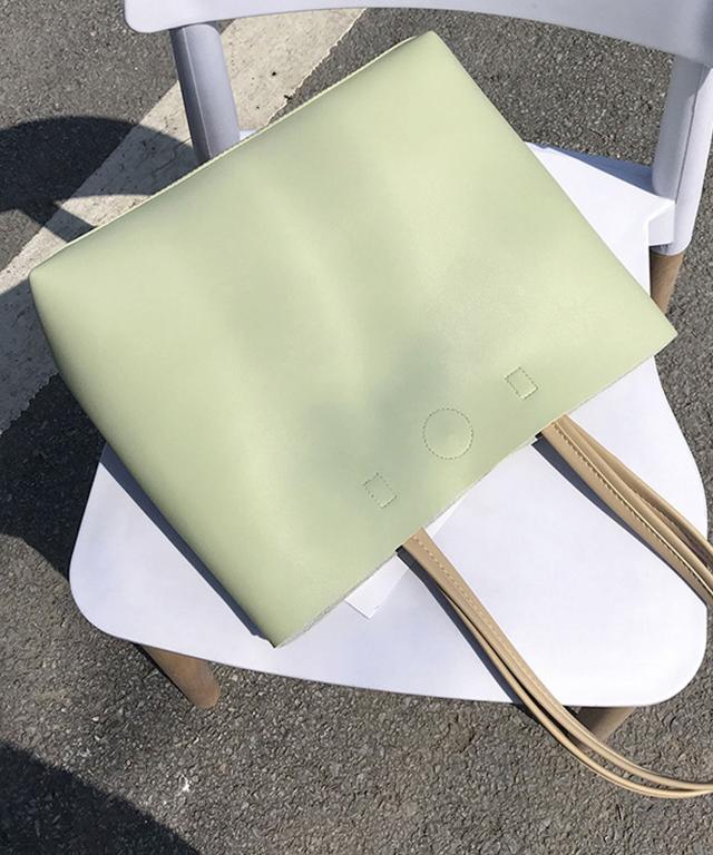 硬めのPUレザーをスクエア型にカットし、定番シンプルなトートバッグに♪