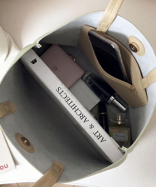 PUレザータッチ横長トートバッグ/サブバッグ/旅行バッグ。