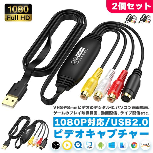 ビデオキャプチャ USB2.0接続 選べる 2個セット オス メス キャプチャーボード ビデオキャプチャー S端子 コンポジット端子 キャプチャーケーブル ビデオ DVD VHS ゲーム機 カメラ パソコン取り込み デジタル化 PC mac windows