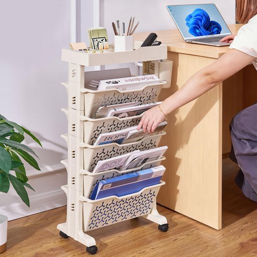 VECELO 書架 スリム本棚 5段 教科書収納 幅39X奥行き18.8X高さ75.2CM ファイルワゴン 可動式 隙間収納 組立簡単 多機能 キャスター付き インテリア 大容量 安定性 本立て 省スペース 北欧 オープ…
