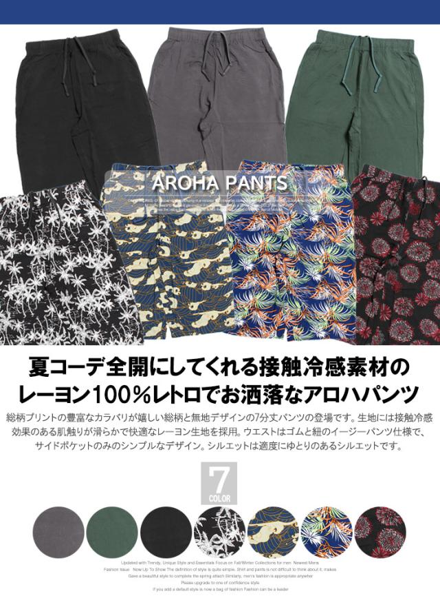【メール便で送料無料】アロハ ショートパンツ メンズ 大きいサイズ 総柄 レーヨン 薄手 ウエストゴム 膝下 ハーフパンツ ステテコ 花柄 ボタニカル ショーツ 短パン 部屋着 ルームウェア 接触冷感 涼しい ストリート系 ワークマン プラス 父の日 ギフト 涼しい