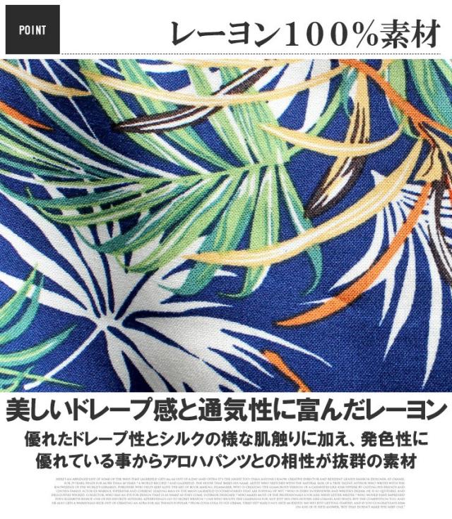 | 説明 | 総柄プリントの豊富なカラバリが嬉しいボタニカル柄のショートパンツの登場です。 生地には接触冷感効果のある肌触りが滑らかで快適なレーヨン生地を採用。 ウエストはゴムと紐のイージーパンツ仕様で、サイドポケットのみのシンプルなデザイン。 裾は膝辺りのハーフパンツ丈で、シルエットは適度にゆとりのあるシルエットです。 春、夏のルームウェア、パジャマ、ワンマイルウェアとして大活躍間違いなしのパンツです。 同素材の半袖アロハシャツとのセットアップも可能です。 --> |