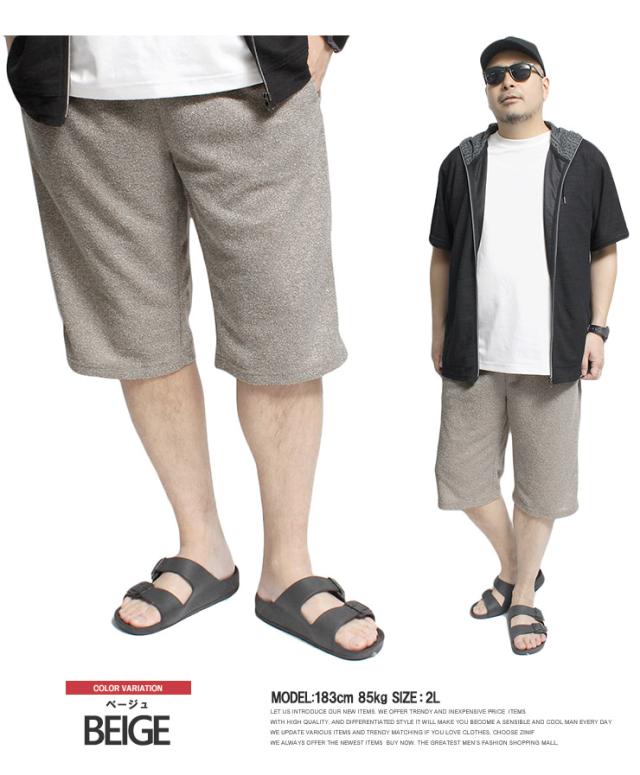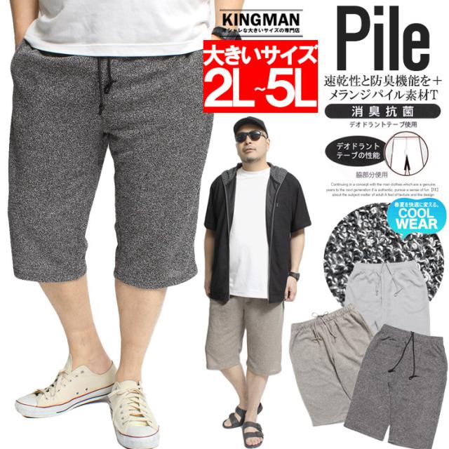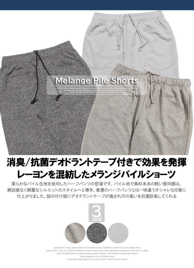 送料無料 ショートパンツ メンズ 大きいサイズ メランジ パイル 消臭 抗菌 薄手 ウエストゴム イージー ハーフパンツ ショーツ イージーパンツ 短パン 半パン ジャージ 下 部屋着 パジャマ ルームウェア ワークマン プラス サイズ