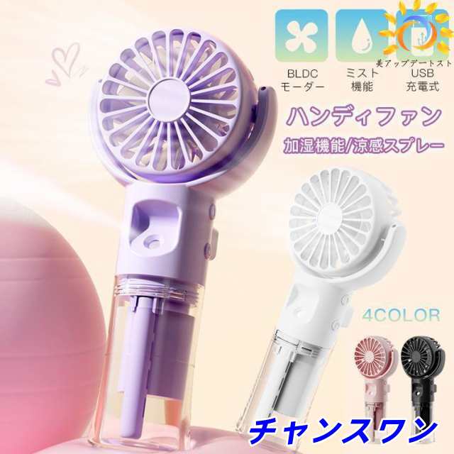 ハンディファン 首かけ扇風機 首掛け扇風機 ミスト機能 潤い 水分補給 加湿扇風機 USB充電式 ハンディ スタンド 小型 手持ち 腰掛け 卓上 軽量 4段階風量