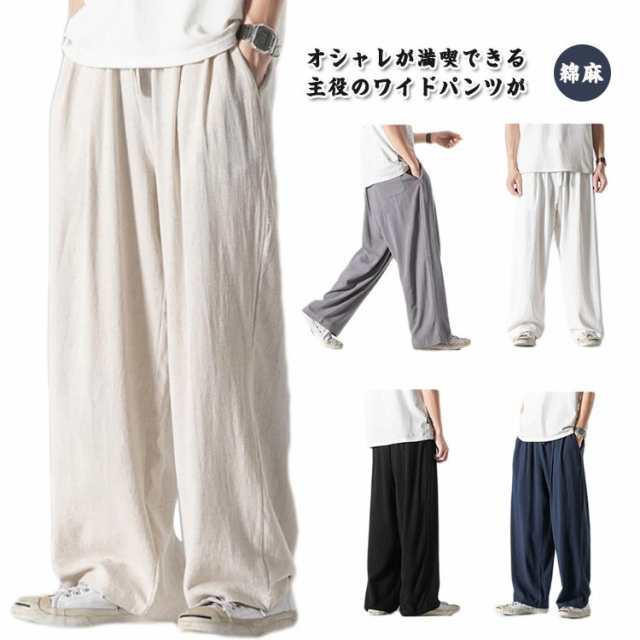リラックス 太め イージーパンツ バギーパンツ カジュアルパンツ ワイドパンツ メンズ 春 ロングパンツ 無地 薄手 チノパン ウェストゴム ワイドパンツ オールシーズン サルエル 長ズボン 父の日 コットンリネン 夏 秋 ダンス衣装 部屋着