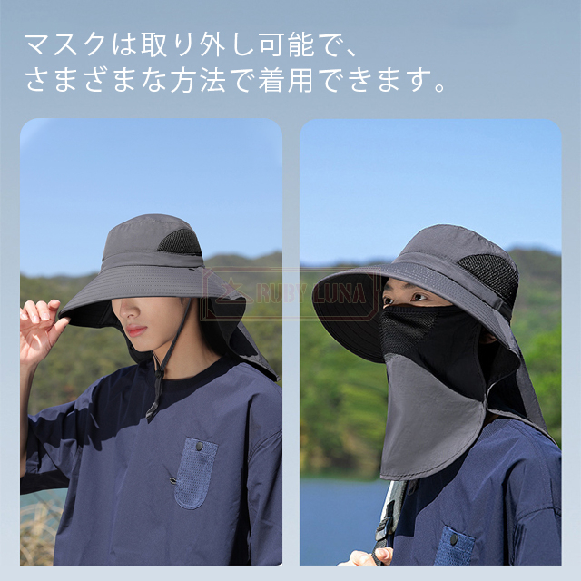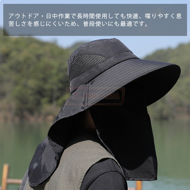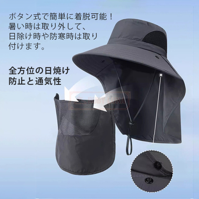 | 特徴 | ◆紫外線を360度カット!暑さ対策・日焼け防止に大活躍するサファリハットです。 ◆つば付きハットに、ネックガード・フェイスマスクもついた、1つで3役の機能性です。 ◆ボタン式で簡単に着脱可能!暑い時は取り外して、日除け時や防寒時は取り付ける。 ◆軽量かつ速乾性に優れた、肌触りの良い生地を採用し、暑さや不快感を防ぎます。 ◆後ろにドローコードを引くことで、サイズも調整可能です。 ◆内蔵の汗止めバンドと調節可能なあご紐が目や顔の汗を取り除きます! 風による吹き飛ばしを防ぎます。 ◆アウトドアシーンはもちろん、フィッシング・庭仕事・ソロキャン・山登りなど、季節を問わず、幅広いシーンで活躍します。 |