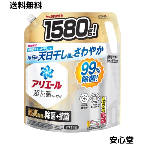 アリエール 洗濯洗剤 液体 超抗菌プレミアム 最高傑作の除菌+抗菌 詰め替え 1580g [大容量]