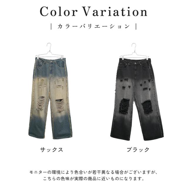 【サイドフリンジグラデーション加工バギーパンツ】