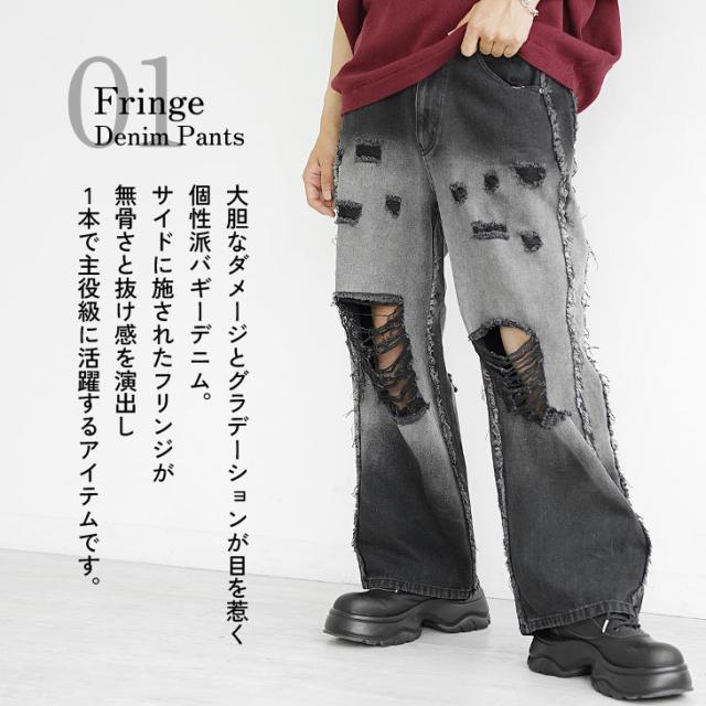 「大胆な個性を纏う」サイドフリンジグラデーション加工バギーパンツ