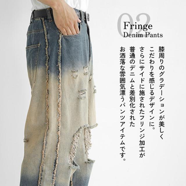 【サイドフリンジグラデーション加工バギーパンツ】●DESIGN(デザイン)