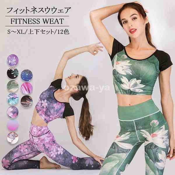 フィットネスウェアレディースヨガウェア上下セットスポーツブラレギンスおしゃれかわいい花柄スポーツウェアウォーキングジョギングyd12