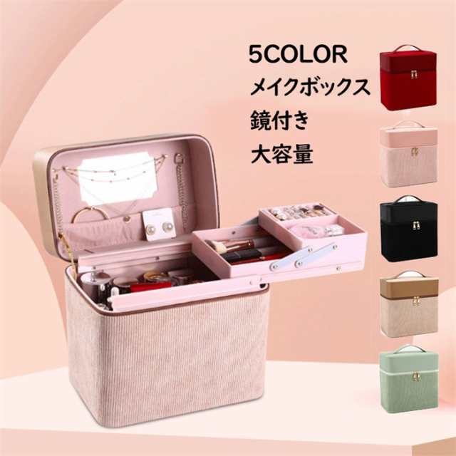 メイクボックス 鏡付き 大容量 コスメボックス お洒落 かわいい メイク収納 コスメ収納 持ち運び 化粧品収納ボックス 綺麗 化粧品ボックス 収納ケース 上品